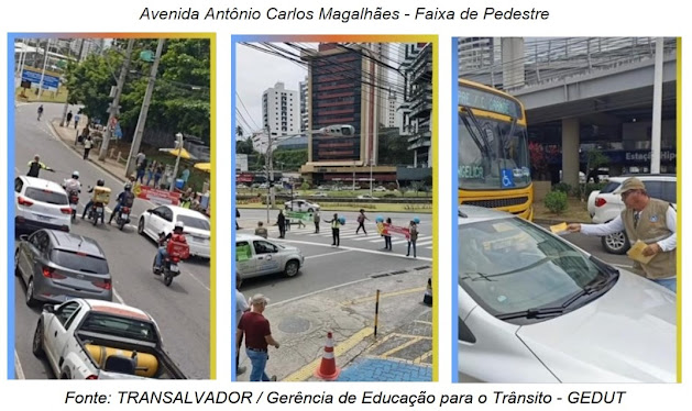 Os condutores e pedestre que transitavam na Avenida Antônio Carlos Magalhães, na manhã do dia 18 de setembro, foram recepcionados na faixa de pedestre, pelos agentes de trânsito. A iniciativa consistiu na abertura de faixas com dizeres de cunho educativo e distribuição de materiais para sensibilização e orientação do cidadão.
